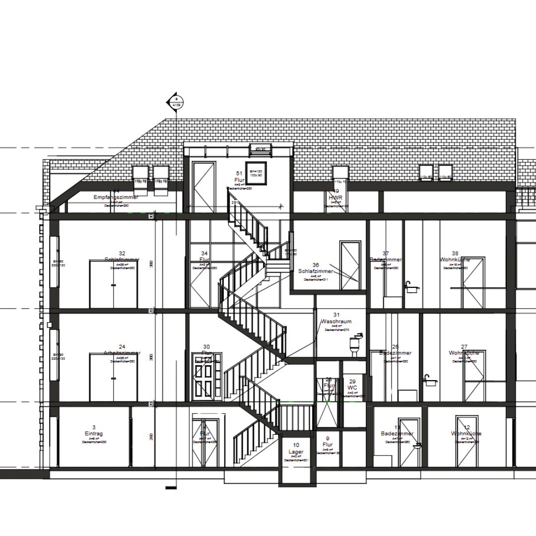 Für dieses Projekt wurde ein Mehrfamilienhaus in Oldenburg vollständig digital erfasst und per 3D-Scan aufgenommen. Auf Basis der Punktwolke entstanden bemaßte Grundrisse, Schnitte, Ansichten und Flächenberechnungen als verlässliche Grundlage für die weitere Planung, Dokumentation und Bearbeitung. So wurde aus dem bestehenden Gebäudebestand eine belastbare und nutzbare Planungsgrundlage geschaffen.