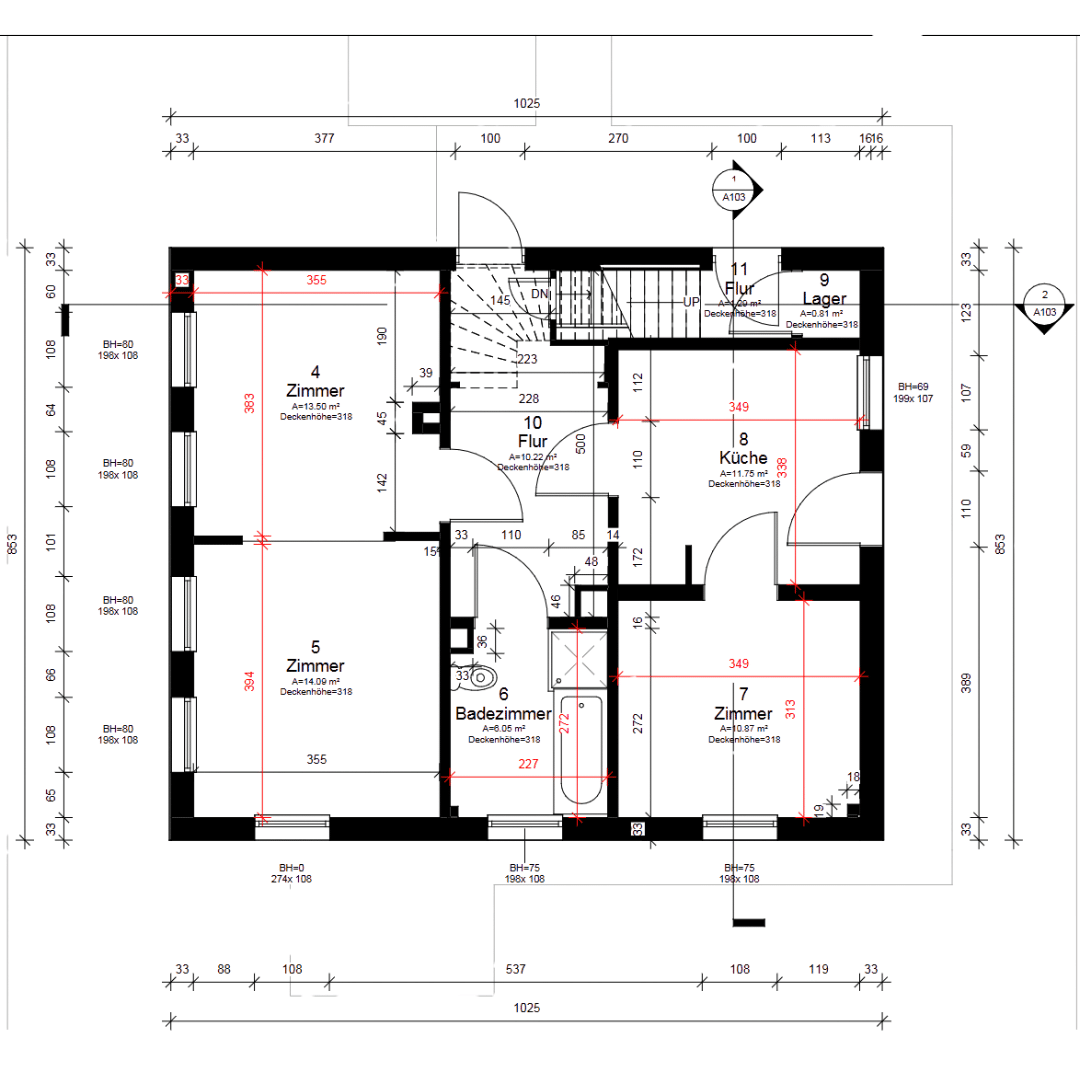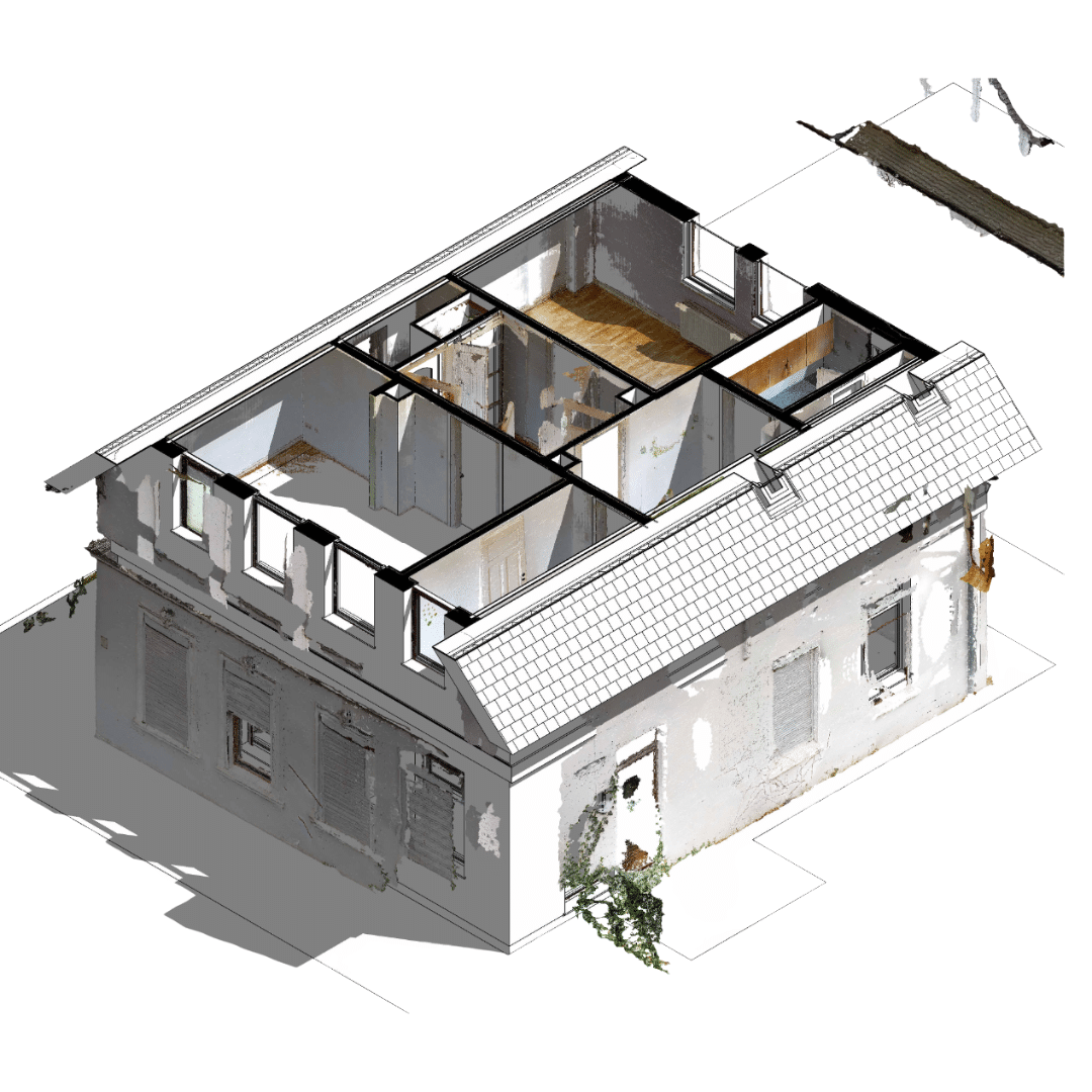 Im Rahmen eines Sanierungsvorhabens wurde dieses Wohnhaus in Oldenburg von uns digital erfasst und per 3D-Scan aufgenommen. Aus der aufbereiteten Punktwolke entstanden bemaßte Grundrisse und Schnitte als belastbare Grundlage für die weitere Planung und Bearbeitung. Das Projekt zeigt, wie unsere Leistung dazu beiträgt, Bestandsgebäude präzise zu erfassen und Sanierungsvorhaben auf eine verlässliche Basis zu stellen.